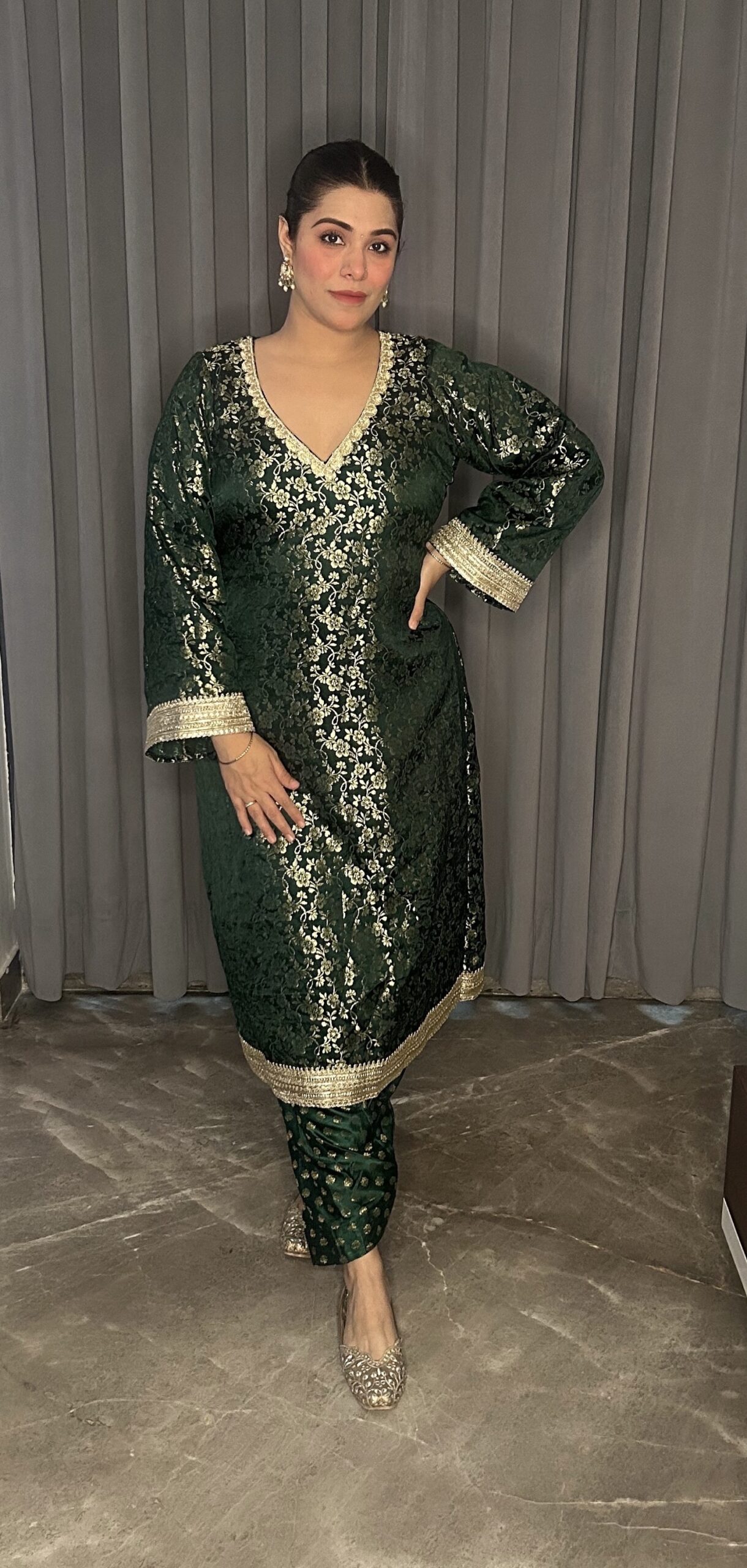 Green Brocade Kurta set.