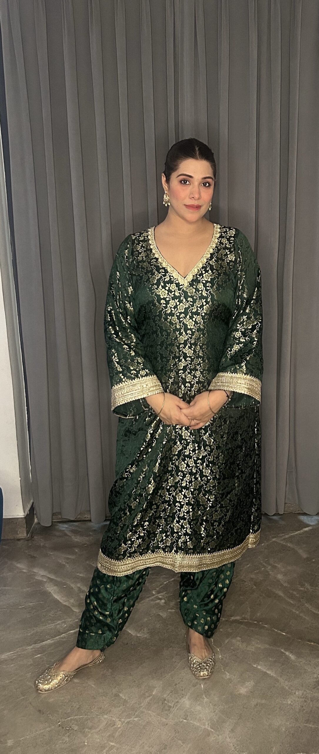 Kashmiri style brocade kurta with salwar.