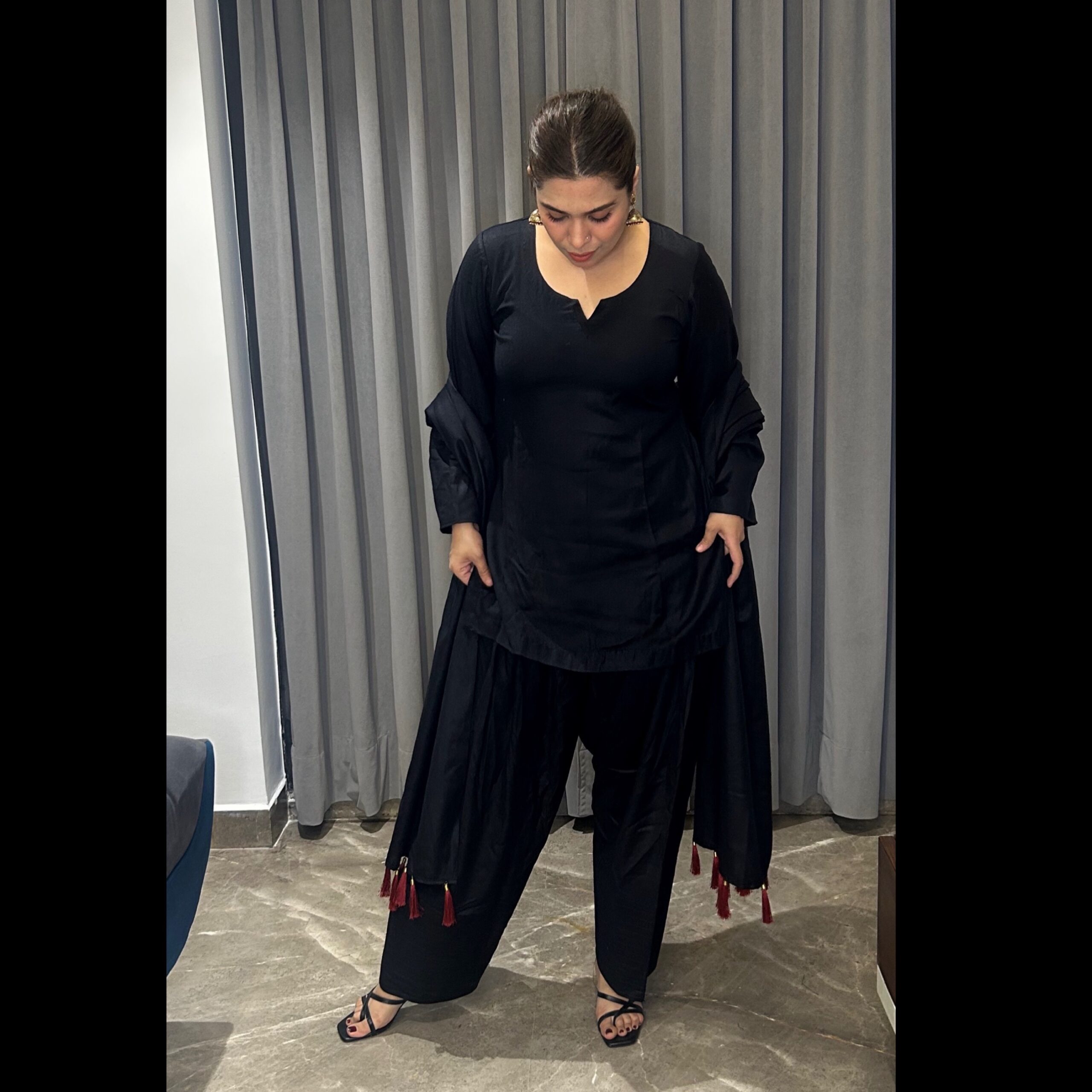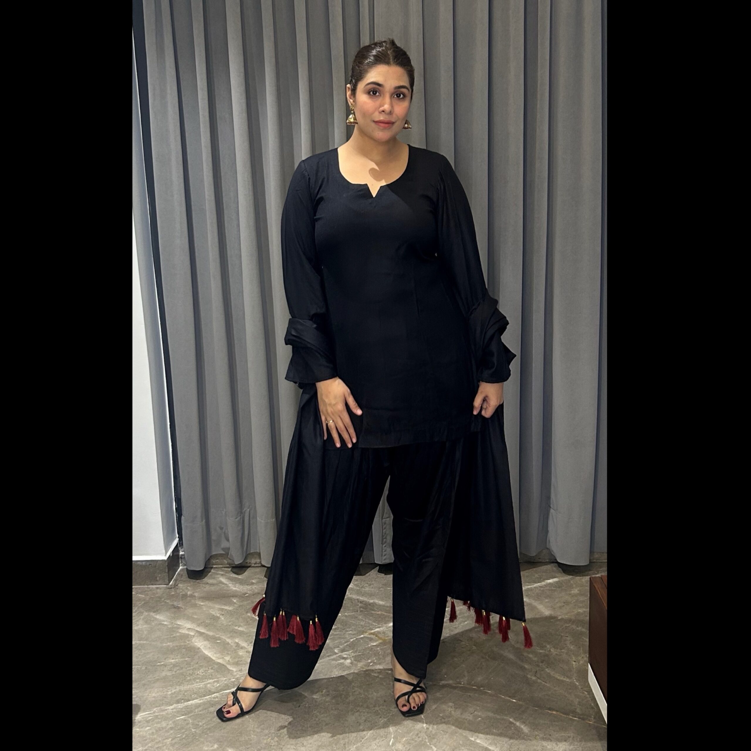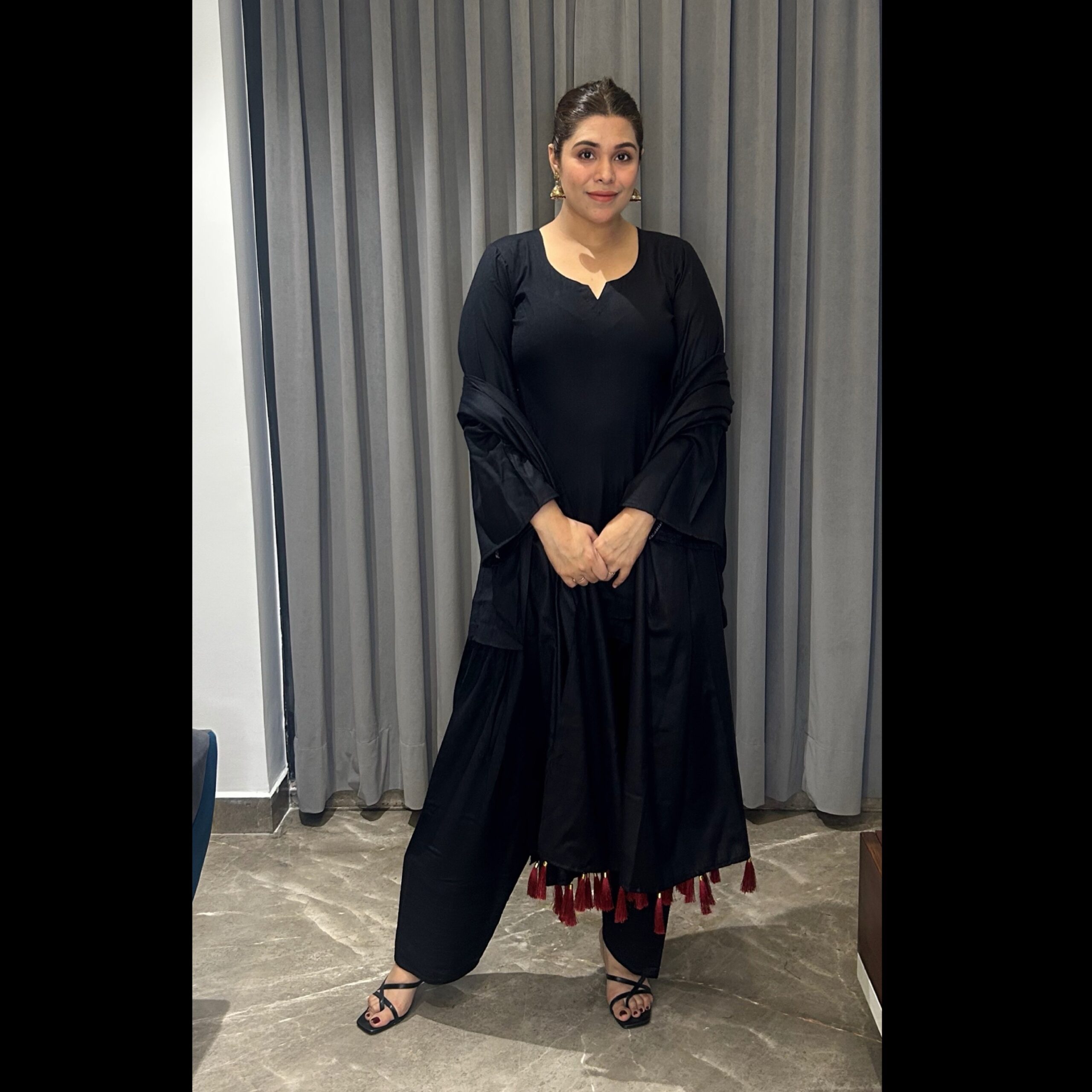 Be the first to review “Woolen Black kurta with farshi salwar and dupatta.”